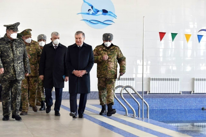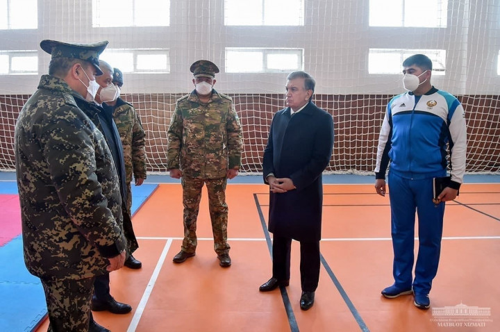 Сегодня Президенту на макетной презентации было доложено об объектах, построенных на территории полигона. Затем Шавкат Мирзиёев осмотрел учебный корпус, библиотеку, кухню, казармы, спортзал. Понаблюдал за матчем по регби между сборными командами Центрального и Восточного военных округов.