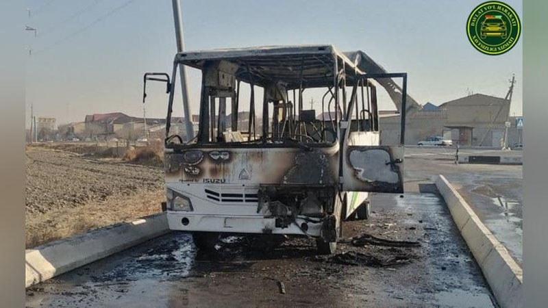 Примерно в 09:30 17 января на конечной остановке «Жондор» в Бухарском районе Бухарской области сгорел автобус.