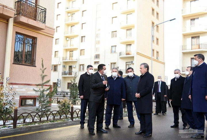 Глава государства осмотрел современные многоквартирные дома, построенные в махалле Низами города Бухары.