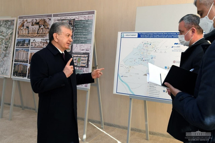 Главе государства также представлена информация о планах строительства и ремонта автодорог в Бухарской области, канализационных сооружений в городе Бухаре, реновации многоквартирных домов.