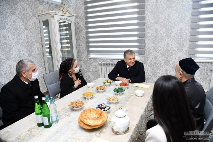 Шавкат Мирзиёев побывал в гостях у ветерана труда Неъмата Хотамова. Состоялась теплая беседа за столом.