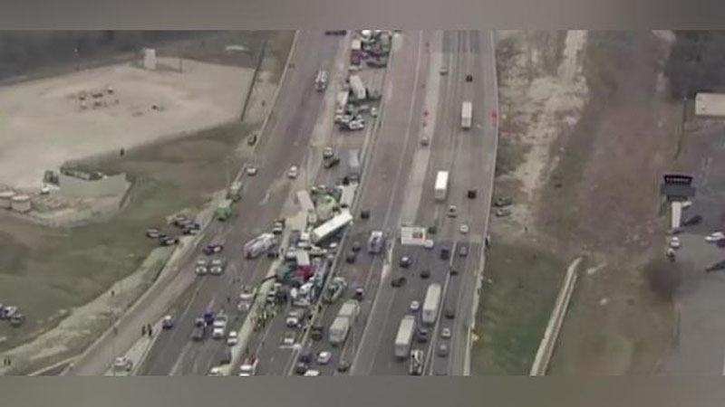 В США целые сутки пытаются устранить последствия массовой аварии на дороге в Техасе, где столкнулись сразу 133 машины.