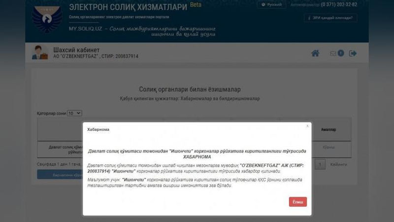 В свою очередь, вся запрошенная информация была представлена в налоговые органы, при необходимости АО «Узбекнефтегаз» готово представить любую дополнительную информацию органам государственной службы, отметили в компании.