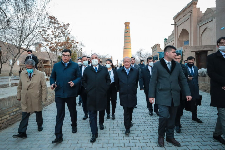 Турецкую делегацию сопровождали заместитель Премьер-министра Республики Узбекистан, председатель Государственного комитета по развитию туризма Азиз Абдухакимов, министр иностранных дел Абдулазиз Комилов и хоким Хорезмской области Фарход Эрманов.