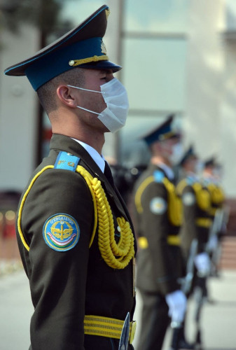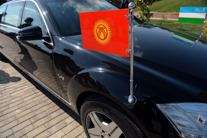 На флагштоках международного аэропорта «Ташкент» вывешены государственные флаги Кыргызстана и Узбекистан, расстелена ковровая дорожка, выстроена рота почетного караула.