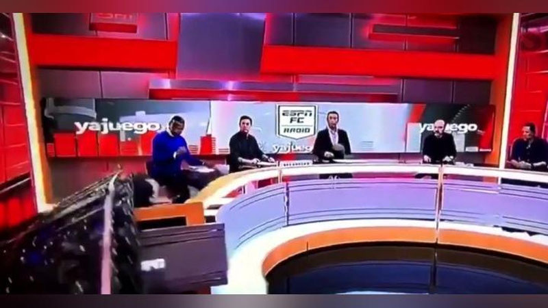Гигантский экран упал на голову спортивного журналиста Карлоса Ордуза во время эфира на колумбийском радио ESPN FC.