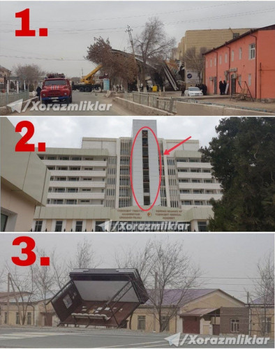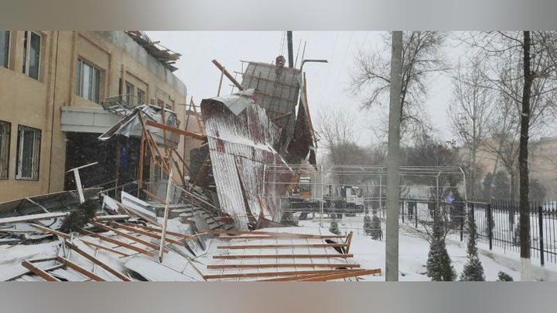 Кроме того, сдуло крышу одной из частных клиник в Янгиарыкском районе, наблюдалось падение деревьев на фасад зданий. Сильным ветром разбиты стеклянные окна на парадной лестнице главного корпуса Ургенчского филиала Ташкентской медицинской академии, сдуло остановку в Питнаке. В результате происшествий никто не пострадал, сообщает Хорезмское УЧС.
