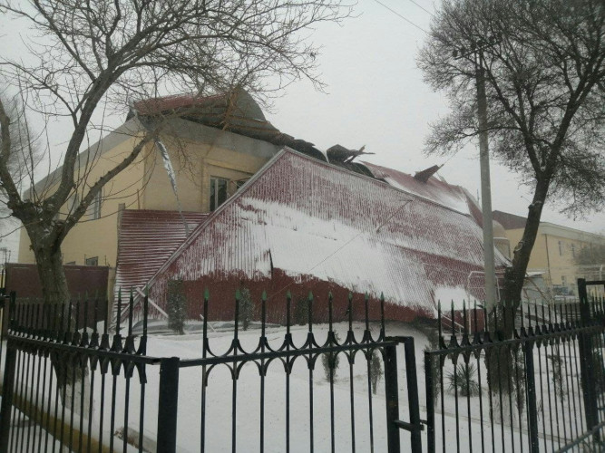 В здании Ханкинского районного суда обрушилась крыша из-за сильного ветра. В результате инцидента никто не пострадал.