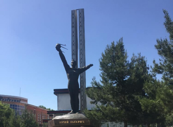 Гагарин также есть в составе монумента на площади Космонавтов в центре Ташкента.