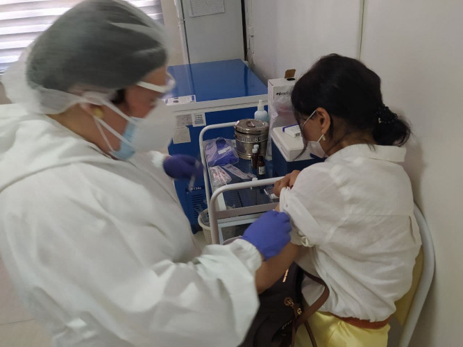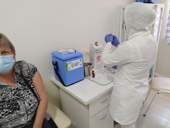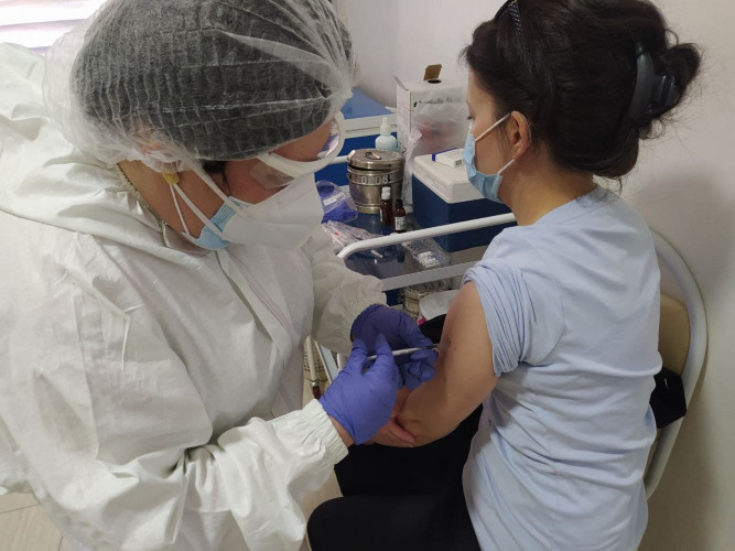 В частности, российскую вакцину "Спутник V" начали прививать в Центральной многопрофильной поликлинике Мирабадского районного медицинского объединения. Городское управление здравоохранения предоставило фотоотчет процесса вакцинации.