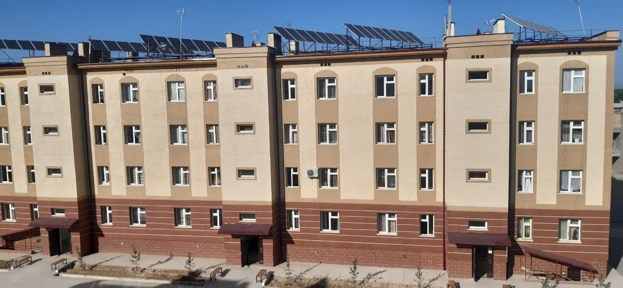 Данный проект реализован ООО «Sun-Hightech» при содействии проекта ПРООН/ГЭФ совместно с Министерством строительства «Содействие в развитии строительства энергоэффективного жилья в сельской местности Республики Узбекистан». Всего на новых четырехэтажных домах в Уйчинском районе установлены 192 солнечные панели. Они позволяют обеспечивать независимое от центрального электроснабжения энергопитание бытовой техники, в том числе, осветительных приборов, телевизоров, холодильников, компьютеров. Для обеспечения бесперебойного обслуживания этих солнечных панелей, компанией взят на работу молодой специалист, проживающий в одном из этих домов, пишет пресс-служба Минэнерго.