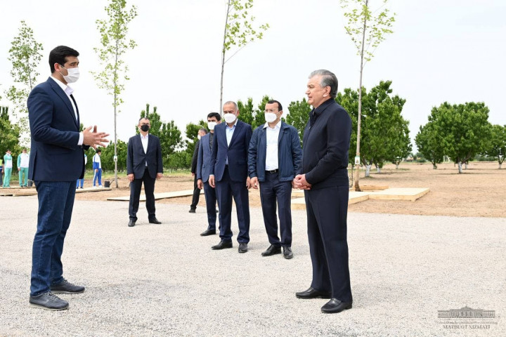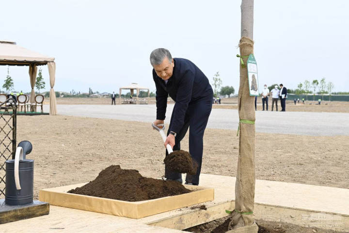 Президент Шавкат Мирзиёев 1 мая посетил место закладки нового парка в Кибрайском районе Ташкентской области.