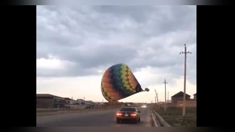 Инцидент произошел накануне вечером. К счастью, пассажиров в корзине шара не было: его отбросило порывом ветра.