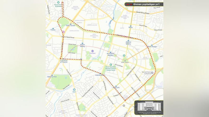 4) Улица Карасарайская — от улицы Абдуллы Кадыри до Ансамбля «Хазрати Имам»;
