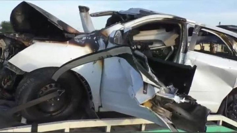 Cobalt сгорел. Два его пассажира получили серьезные травмы и скончались на месте. Водитель и еще один пассажир легковой машины госпитализированы с ожогами.