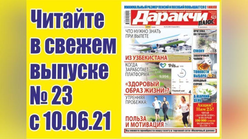 Приобрести новый номер газеты можно в киосках "Матбуот таркатувчи" и торговой сети "Молочный домик".