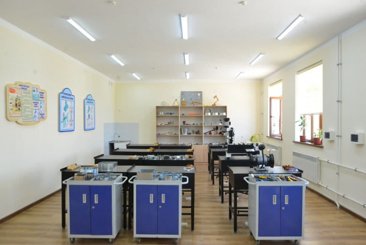 Трёхэтажное здание располагает 26 классами, спортзалом, актовым залом, столовой, библиотекой, трудовыми и специализированными классами. Учебное заведение оснащено компьютерной техникой и лабораторными приборами.