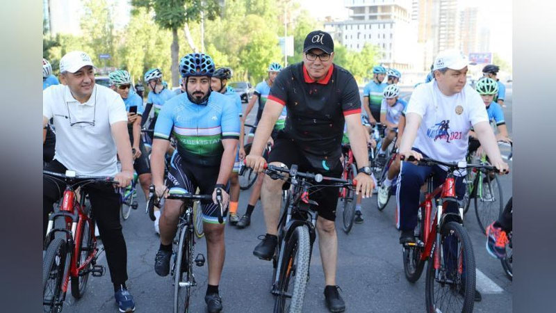 Сегодня рано утром почётный гость провёл велопрогулку по улицам столицы. Его сопровождали заместитель Премьер-министра, Министр туризма и спорта Азиз Абдухакимов, Министр народного образования Шерзод Шерматов и Генеральный секретарь федерации велосипедного спорта Козим Уринбойхужаев.