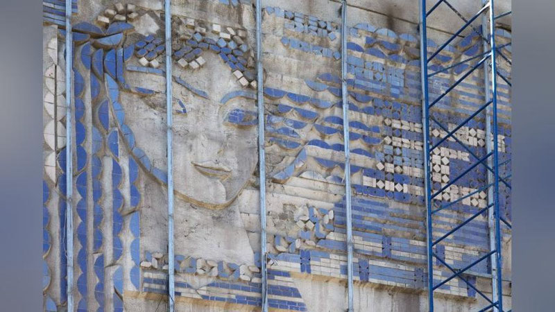 Во время ремонтных работ на поверхности здания было обнаружено старинное панно. После этого Агентство кинематографии пригласило экспертов для изучения находки. Эксперты подтвердили, что панно на самом деле представляет собой мозаику «Девочка с косичками» Альфреда Мазитова. Акмаль Нур, председатель Союза художников, и эксперты сообщили, что панно подлежит восстановлению. Поэтому было решено, что эту фреску целесообразно сохранить и создать новый дизайн здания по мотивам панно «Девочка с косичками».