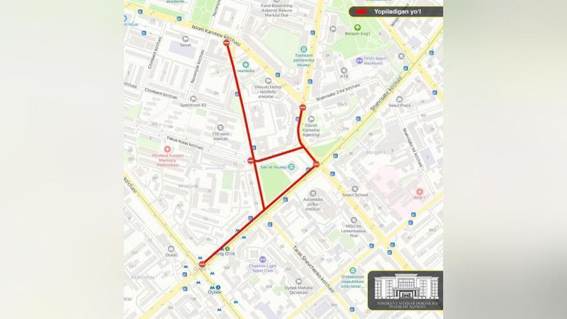 С 17:00 26 июня до 20:00 27 июня в связи с проведением международного соревнования по картингу «Гран-При Тошкент 2021» на некоторых улицах в центре Ташкента будет ограничено движение.