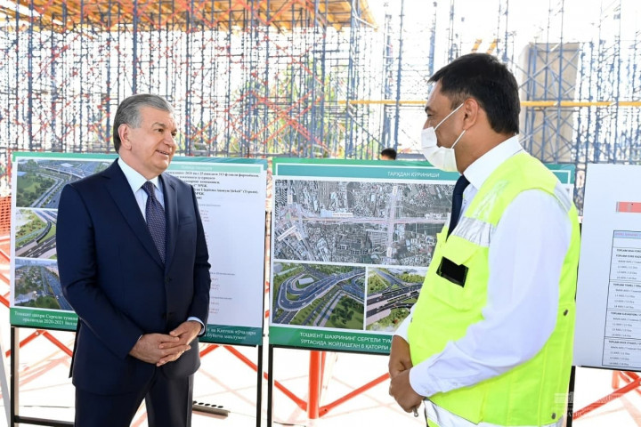 Глава государства ознакомился с ходом строительства дороги и путепровода, которые соединят Сергелийский район с центром столицы.