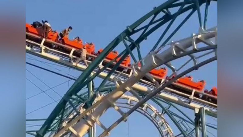 Отмечается, что люди, присутствующие в кадре – это персонал парка, посетителей на аттракционе в тот момент не было.