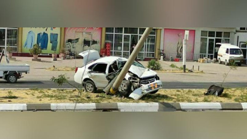 На Ташкентской кольцевой автодороге напротив 16 квартала "Ласетти" въехала в столб уличного освещения посреди дороги. Удар был такой силы, что столб упал.