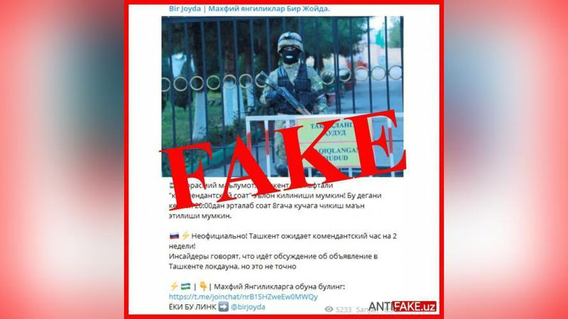 Cообщения о возможном введении запрета выходить на улицу с 20:00 вечера до 8:00 утра в Ташкенте в течение двух недель – являются ложными и не соответствуют действительности.
