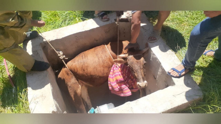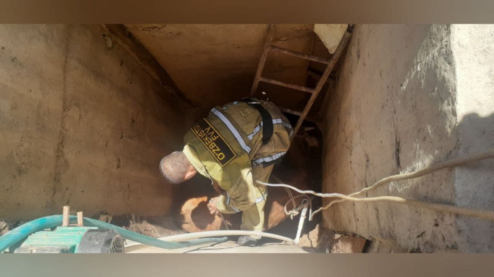 «22 июля примерно в 11:50 в диспетчерскую службу УЧС поступило сообщение о том, что в пятиметровый колодец, расположенный во дворе жилого дома, упала корова. Владелец скотины попросил помочь вытащить животное», - отмечает представитель УЧС Сохиб Вайитов.