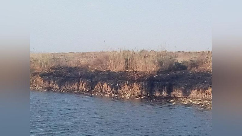 На этой неделе на озере Судочье, расположенном в Каракалпакстане, из-за жаркой погоды загорелся камыш.
