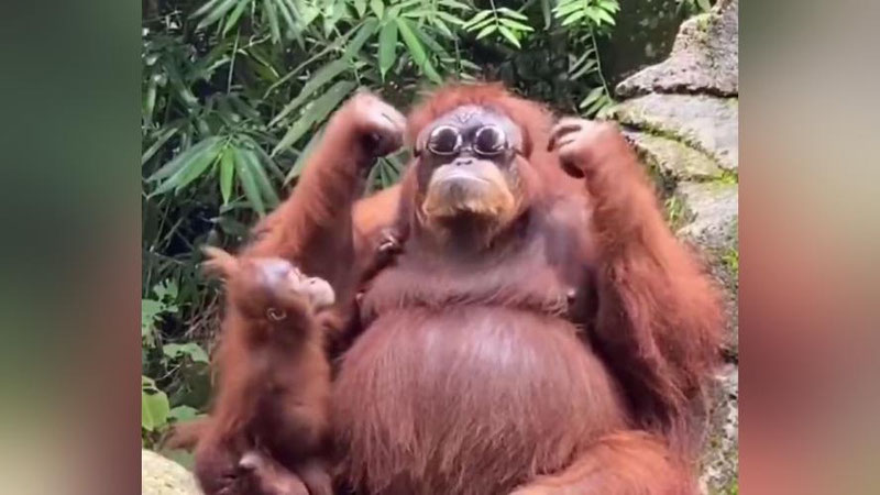 Самка орангутана примерила солнцезащитные очки. Теперь она самый стильный примат.