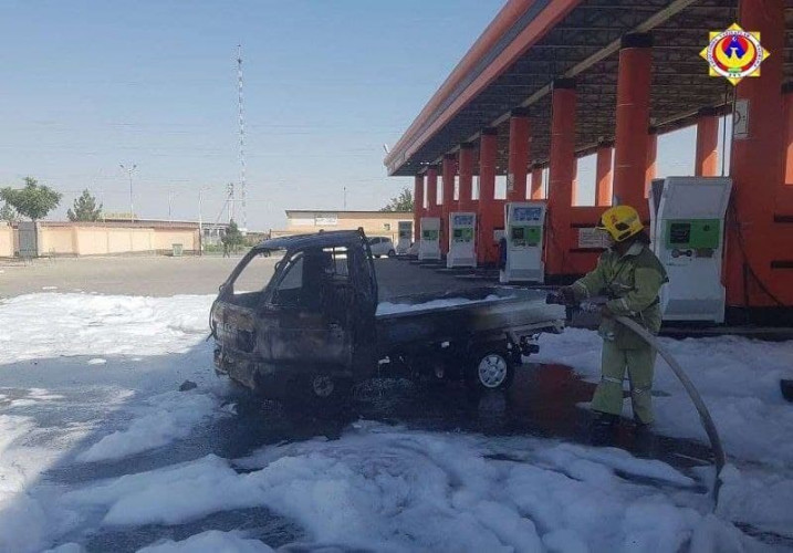 Сегодня, 6 августа, в 09:21, во время заправки топливом на газозаправочной станции «Зарафшан Файз Ойл» в Навои произошел пожар в автомобиле «Лабо».