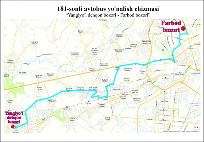 С сегодняшнего дня в Ташкенте запущен новый маршрут №181 Фархадский базар - Янгиюльский декханский базар.