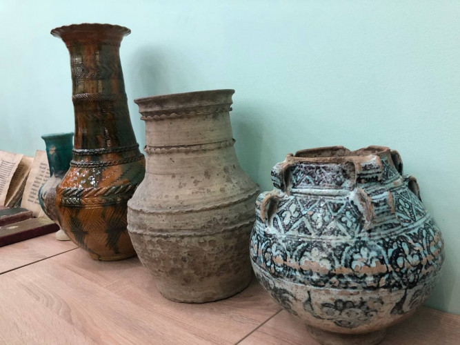 9 рукописей и книг представляют собой религиозные тексты и стихи, созданные в 1644-1880 годах на арабском, фарси и тюркском языках 3 из 16 гончарных изделий принадлежат самаркандской гончарной школе средневековья и современности (XV-XVII века).