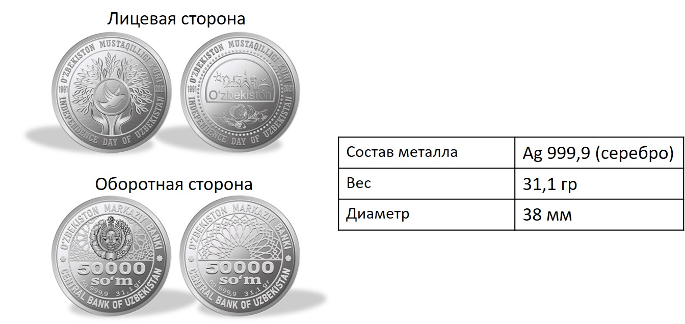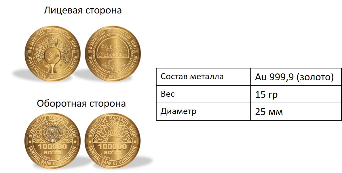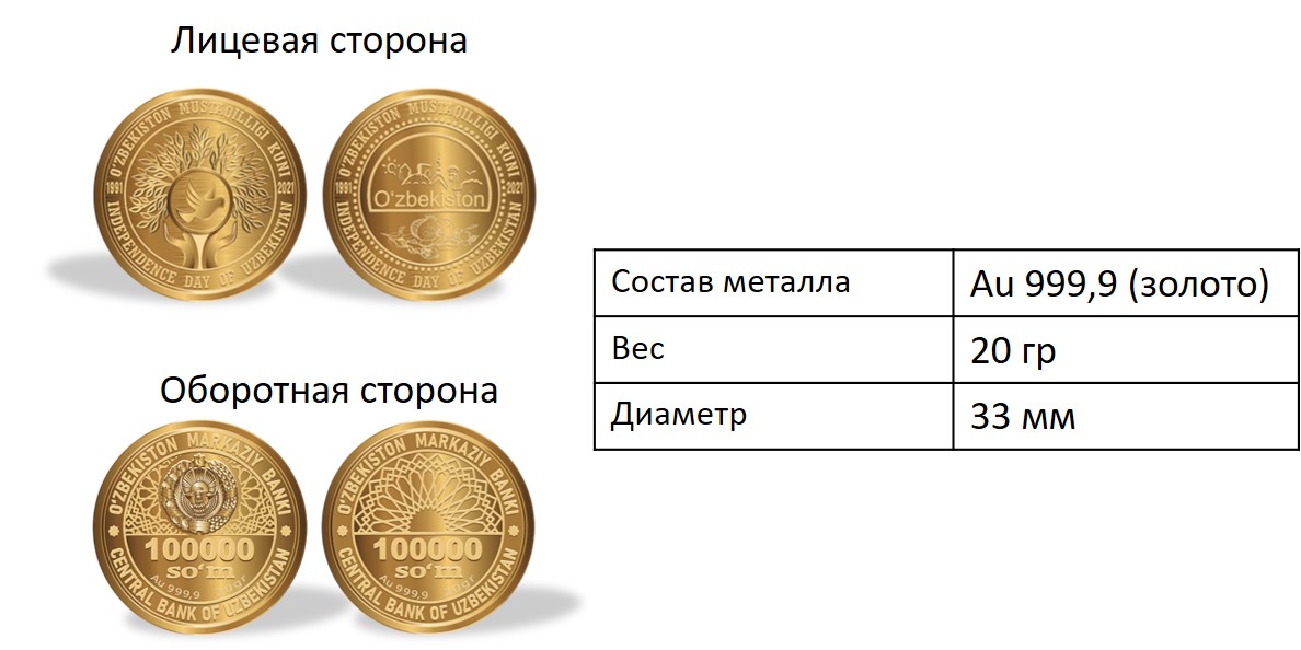 Центральный банк Узбекистана объявил о старте продаж памятных монет из золота и серебра, приуроченных к 30-летию независимости Узбекистана.