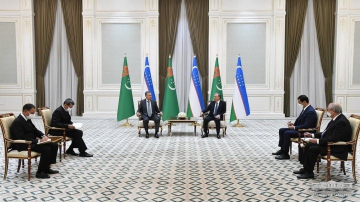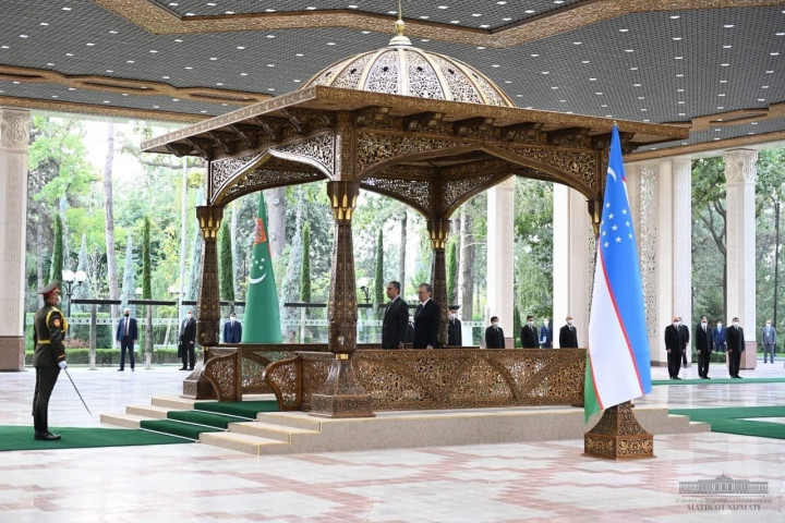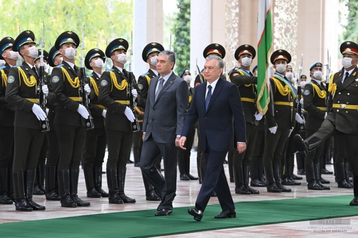 Затем Президенты Шавкат Мирзиёев и Гурбангулы Бердымухамедов провели встречу в узком формате.