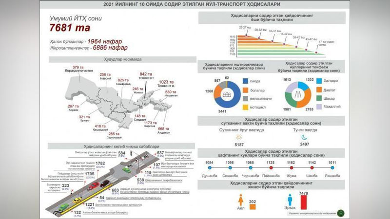 Согласно статистике, больше всего дорожно-транспортных происшествий отмечено в Ферганской области, Ташкентской области и Ташкенте.