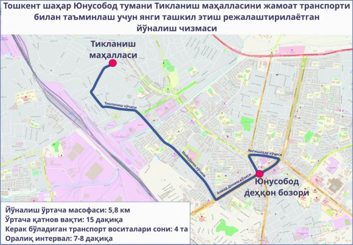 «Махалля Тикланиш - Юнусабадский декханский рынок»,