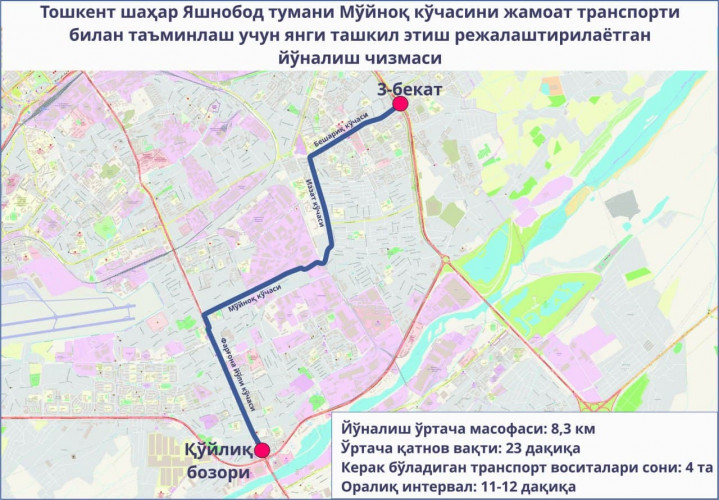 «Улица Муйнак – Куйлюкский декханский рынок»,