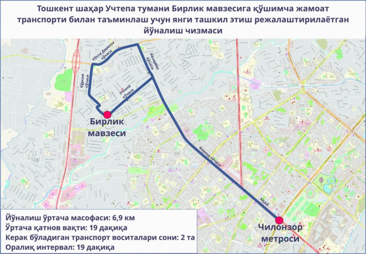 «Массив Бирлик – станция метро «Чиланзар».