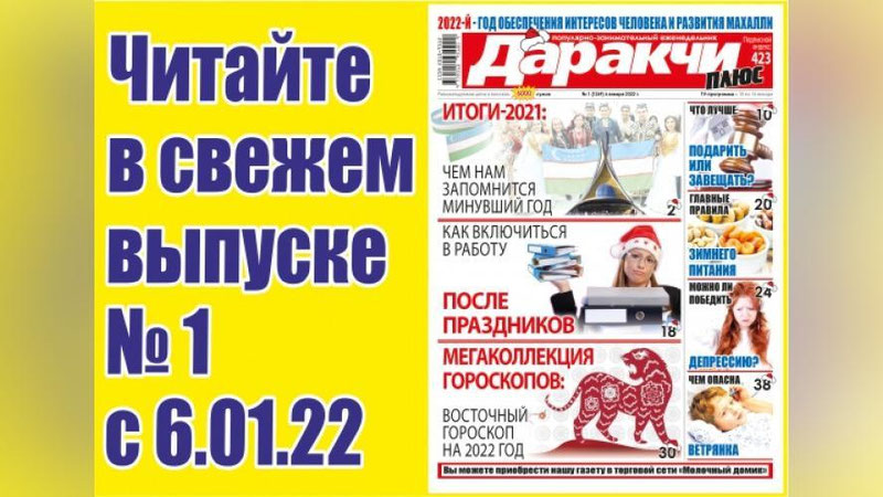 Приобрести новый номер газеты можно в киосках "Матбуот таркатувчи" и торговой сети "Молочный домик".
