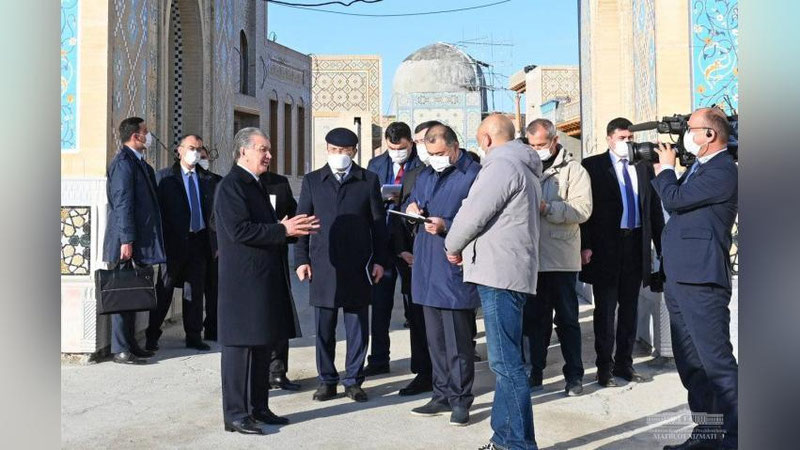 Глава государства 10 февраля ознакомился с ходом строительства туристического центра "Silk road Samarkand".