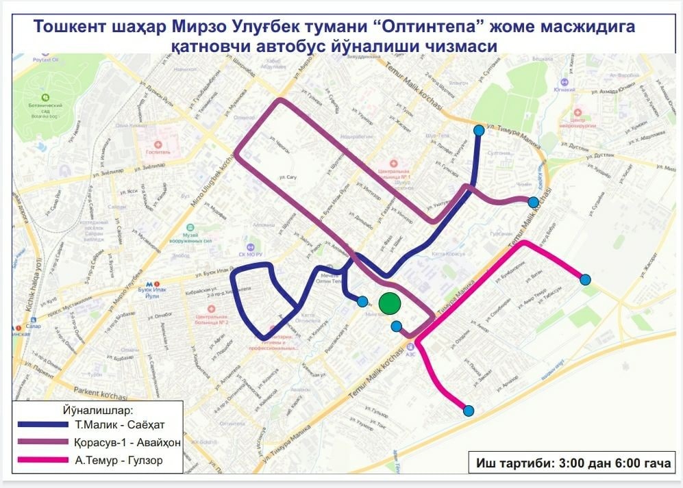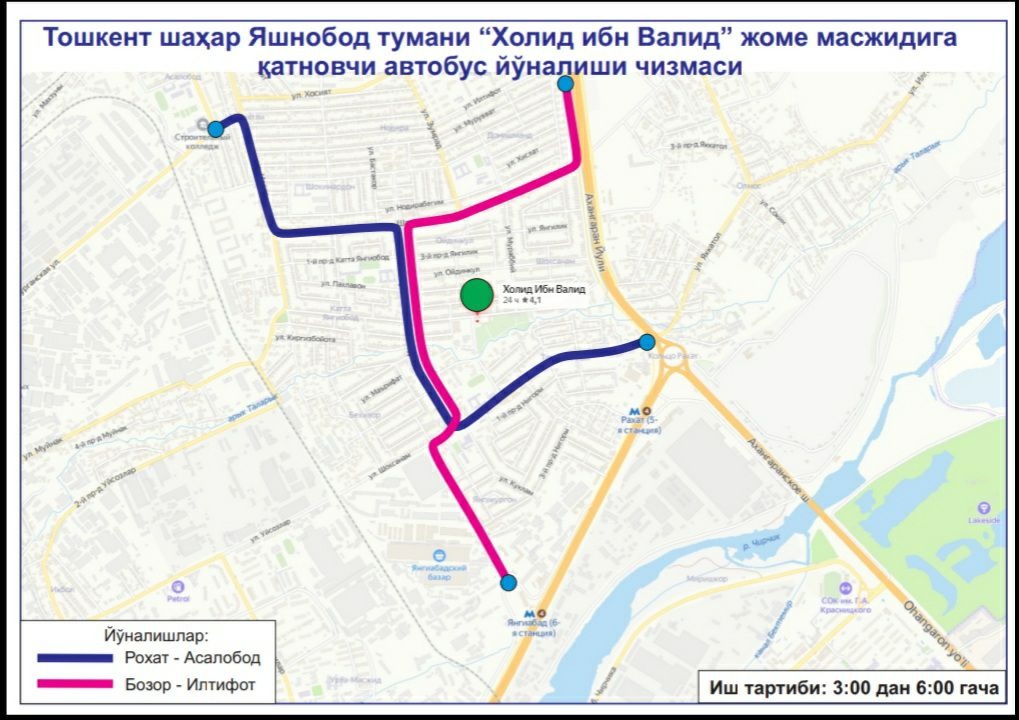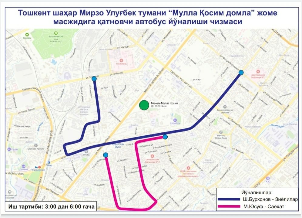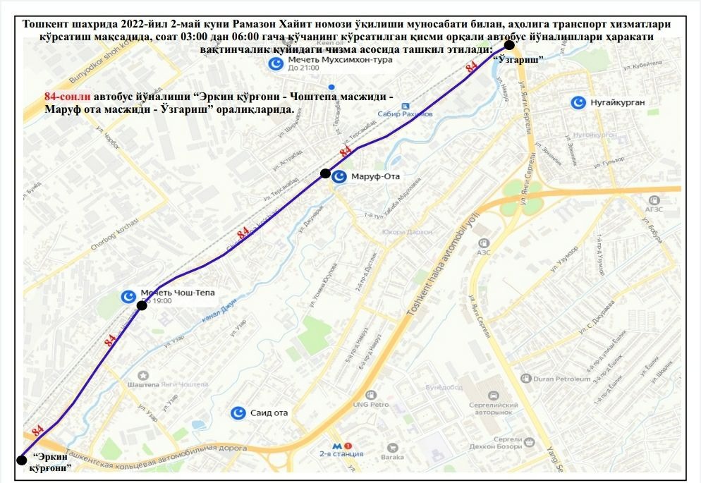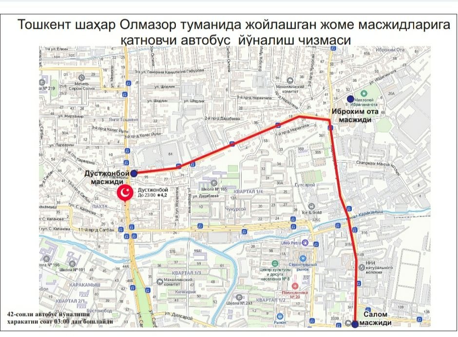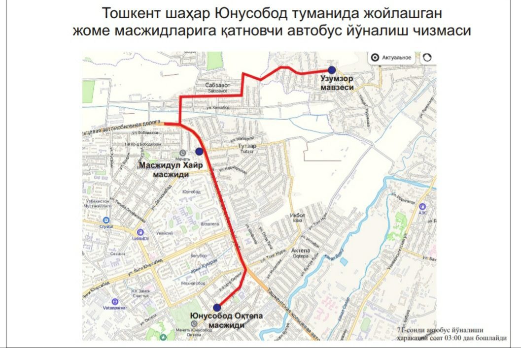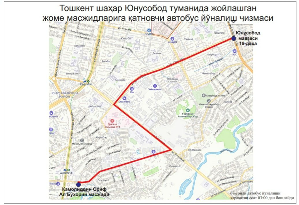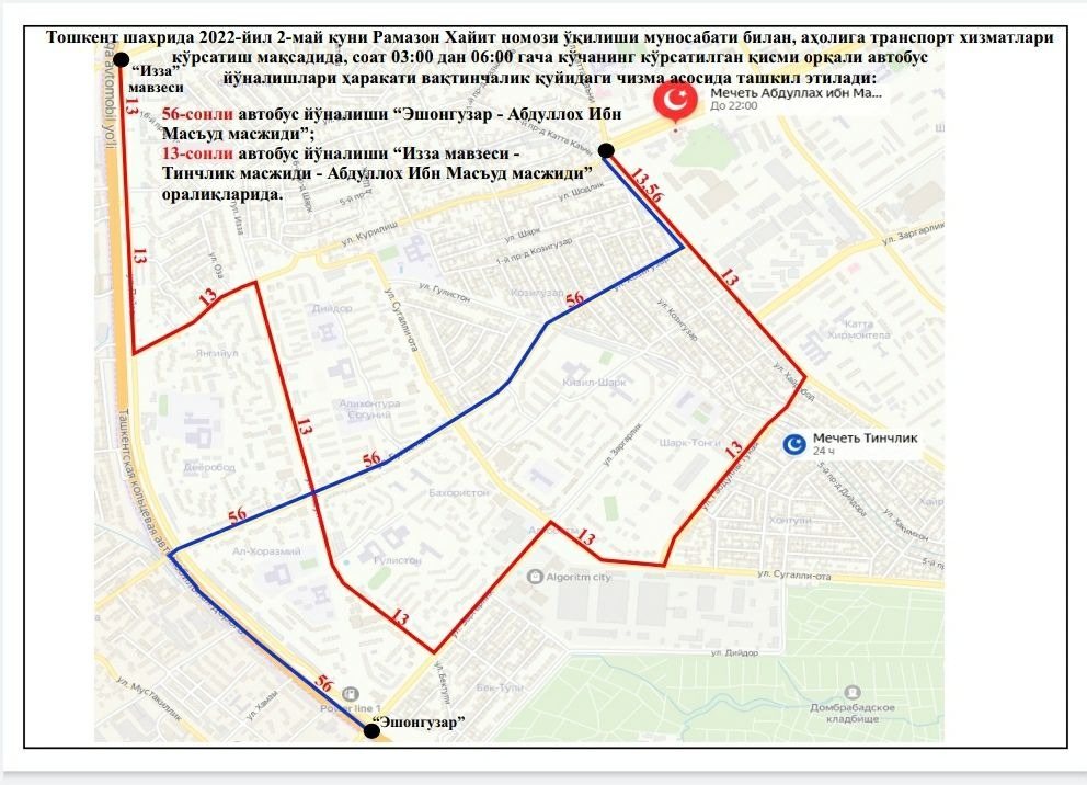 В целях создания удобства для наших граждан при посещении этих мечетей, недопущения пробок на дорогах и обеспечения качественных, безопасных услуг общественного транспорта с 03:00 до 06:00 будут функционировать следующие автобусные маршруты: