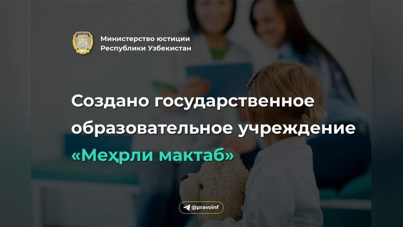 Учреждение «Меҳрли мактаб» имеет статус юридического лица и создано при Министерстве народного образования.