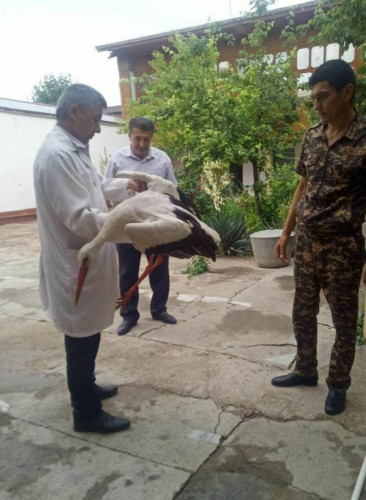 В обращении гражданин сообщил, что неизвестный в махалле "Давлатабад" оставил на улице раненного аиста.