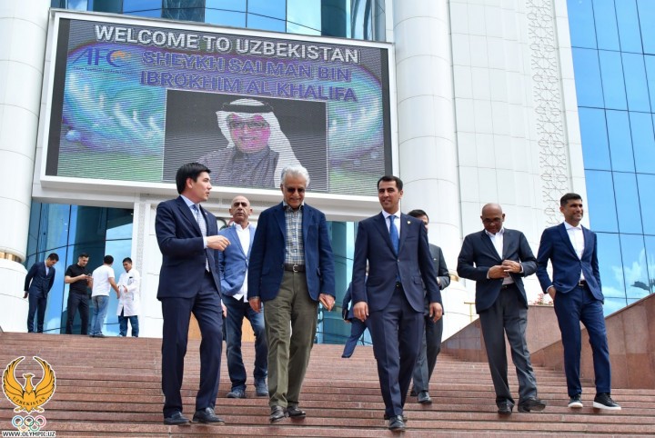В Международном аэропорту Ташкента имени Ислама Каримова делегацию АФК встретили министр Развития спорта Адхам Икрамов, Генеральный секретарь НОК Ойбек Касимов, первый заместитель председателя Национального Олимпийского комитета, первый вице-президент Ассоциации футбола Узбекистана Равшан Ирматов.