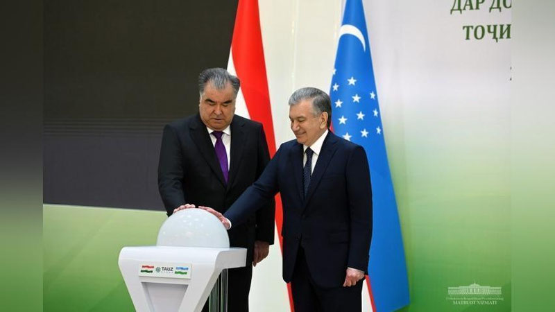 Президенты Шавкат Мирзиёев и Эмомали Рахмон, нажав символическую кнопку, дали старт строительству.