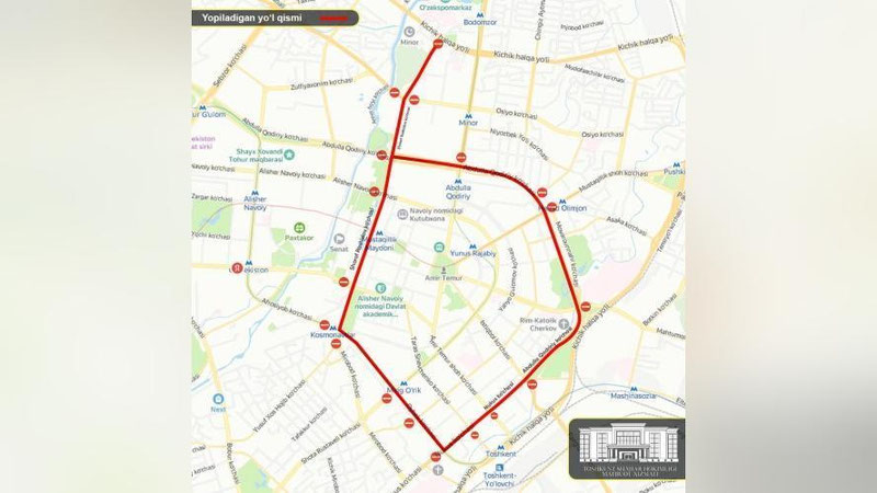 - улица Абдуллы Кадыри — от пересечения с улицами Истикбол и Нукус до пересечения с проспектом Шарафа Рашидова.