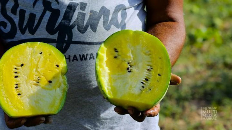 В Минсельхозе Узбекистана рассказали о выращиваемых фермерами в Ахангаране желтых арбузах.