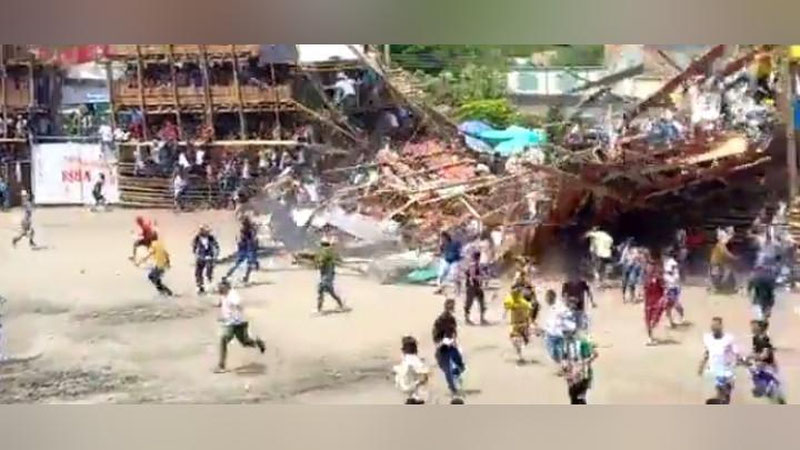Четыре человека погибли и 150 пострадали после обрушения трибун на импровизированной арене для корриды в колумбийской провинции Толима, передает радиостанция Ondas de Ibague.